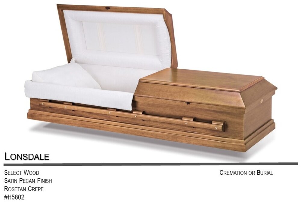 - Use of Cremation Casket (Pecan or Pine Finish below) $5,995